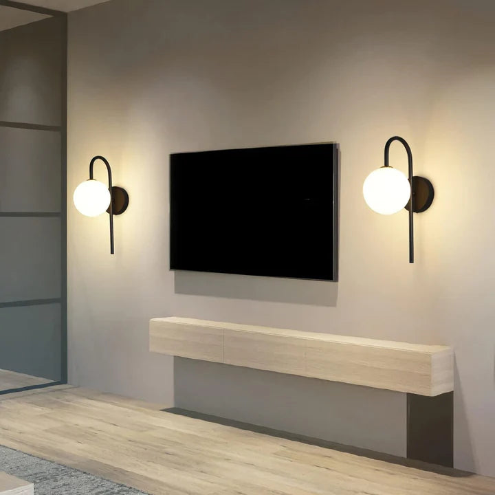 APPLIQUE MURALES NOIRE A BOULE BLANCHE