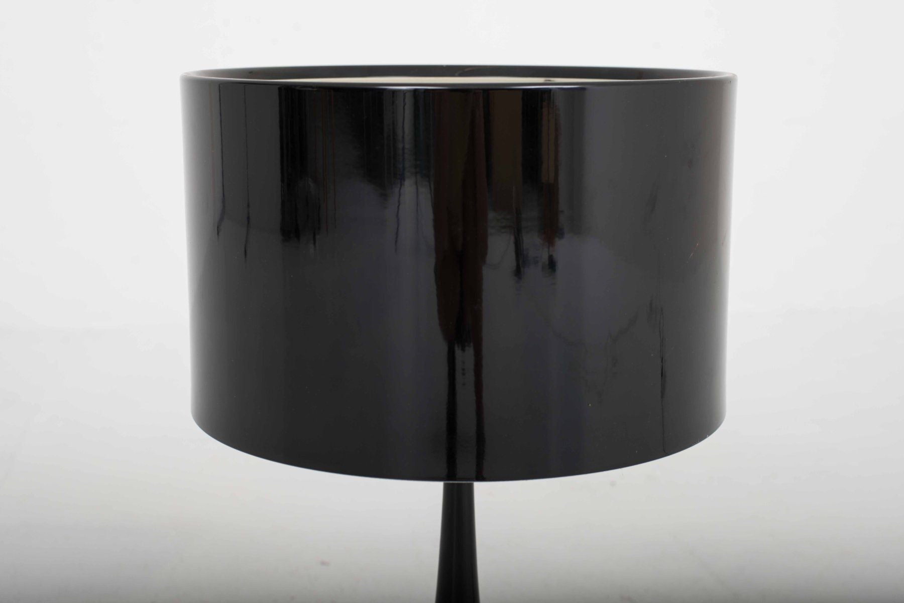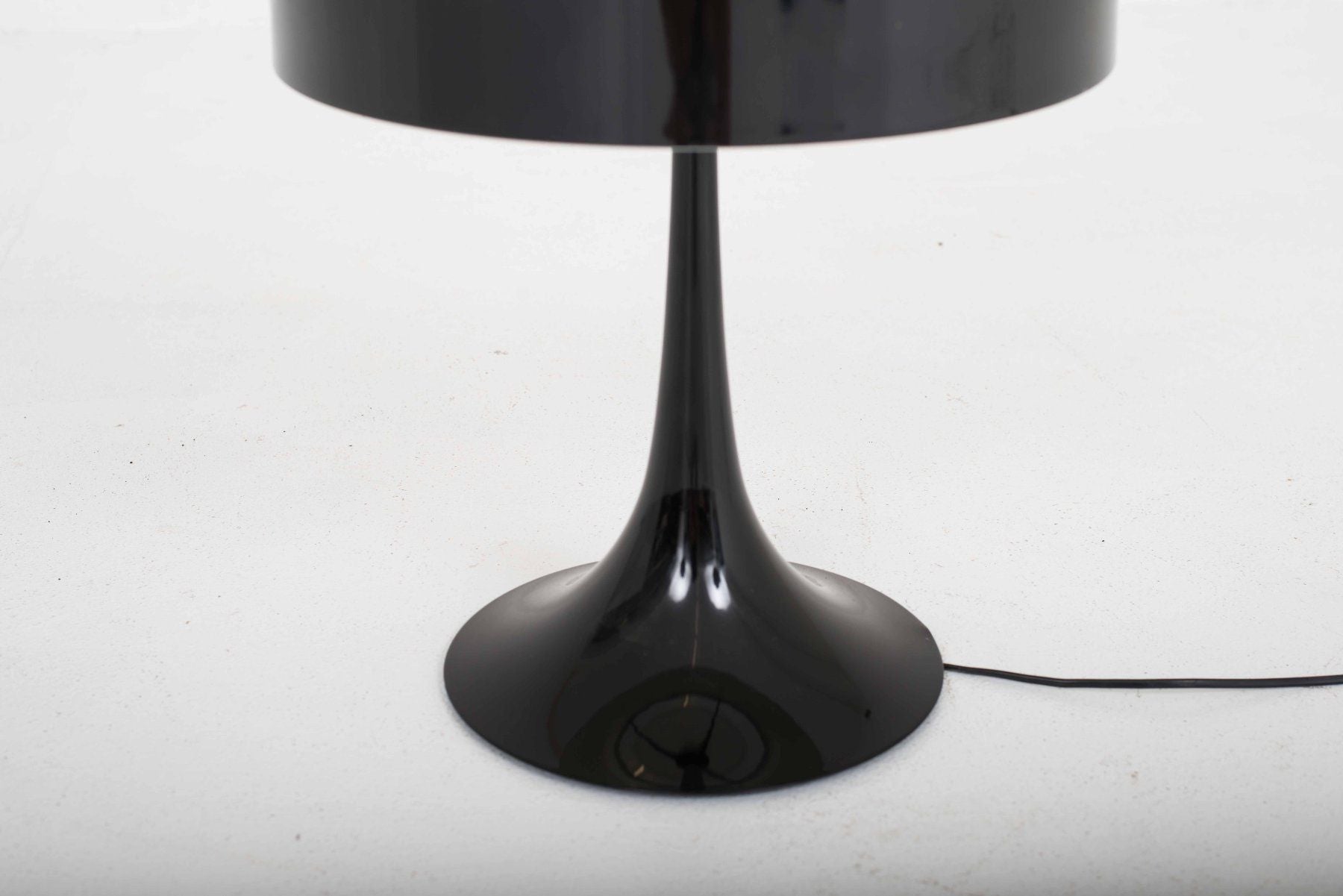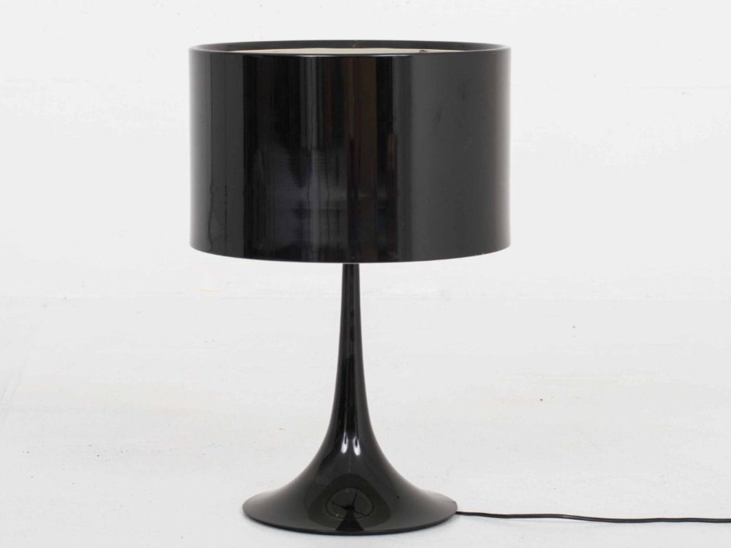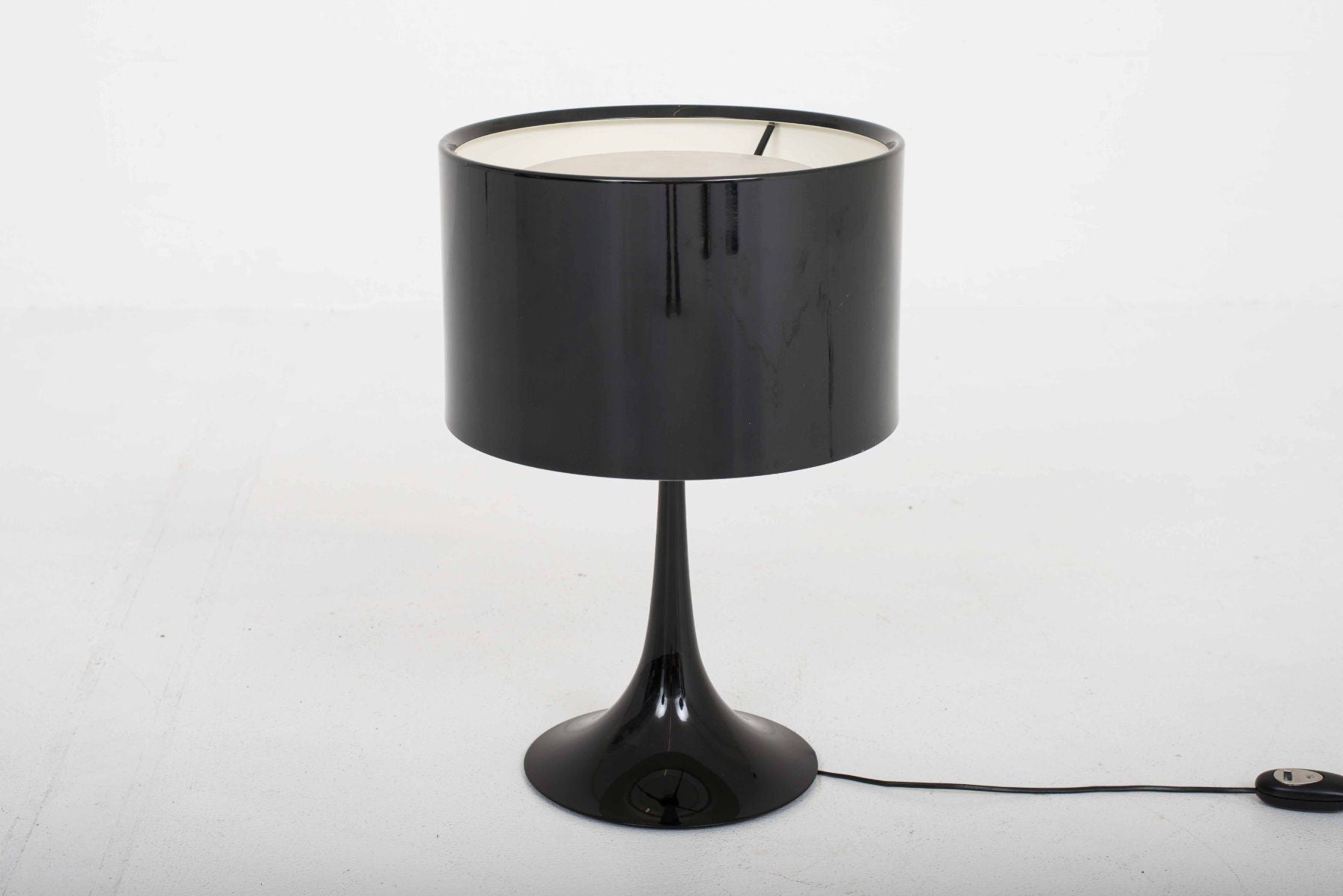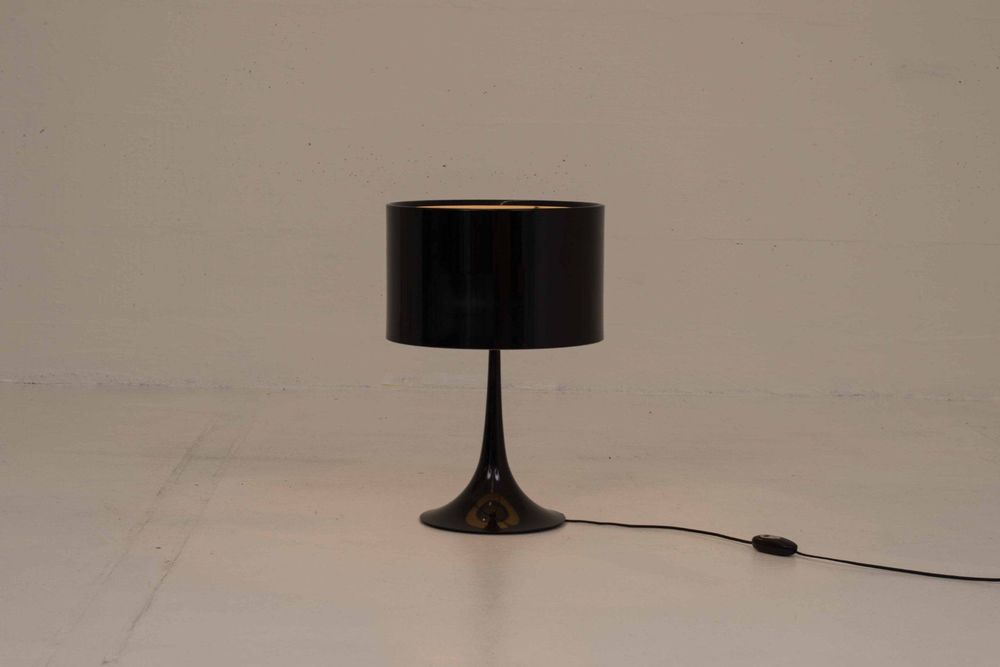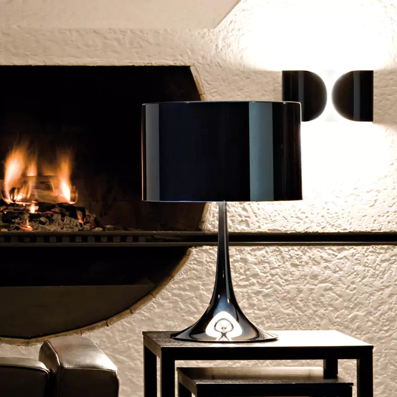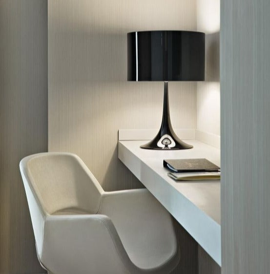 Lampe de table inspirée du modèle Sebastian Wrong. Pied en forme de trompette, surface brillante, et design moderne et dynamique.