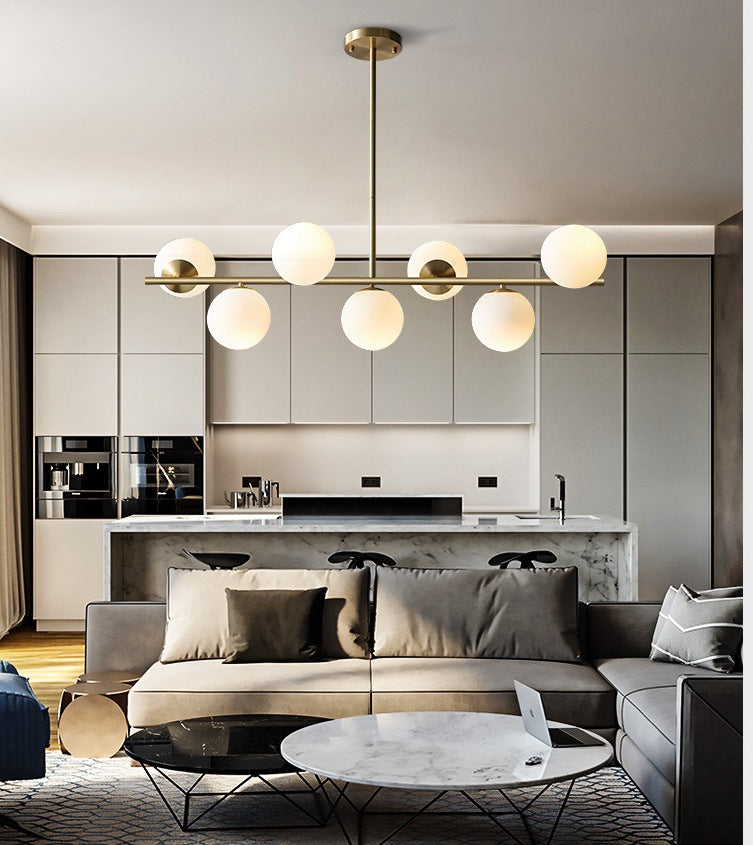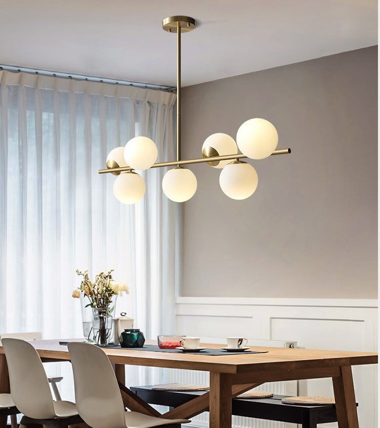 Lustre moderne doré à boules en verre.