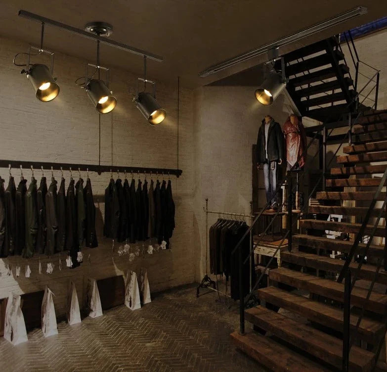 Plafonnier équipé de 3 ou 4 projecteurs avec ampoules E27.