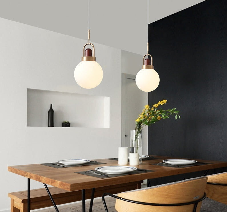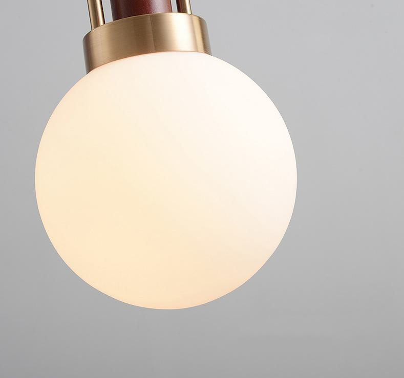 Avec un arc en laiton courbé, un plateau en bois dur sculpté à la main et un globe en verre soufflé.