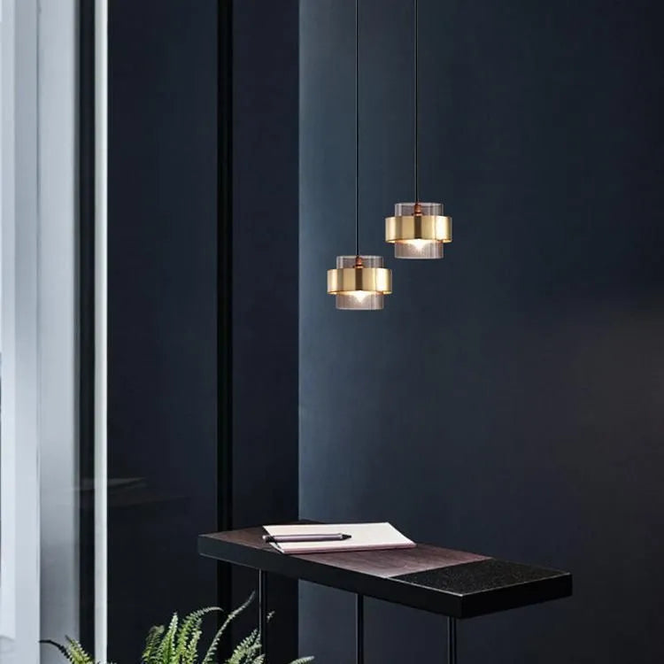 Suspension en métal doré avec verre fumé, à l'esthétique scandinave.